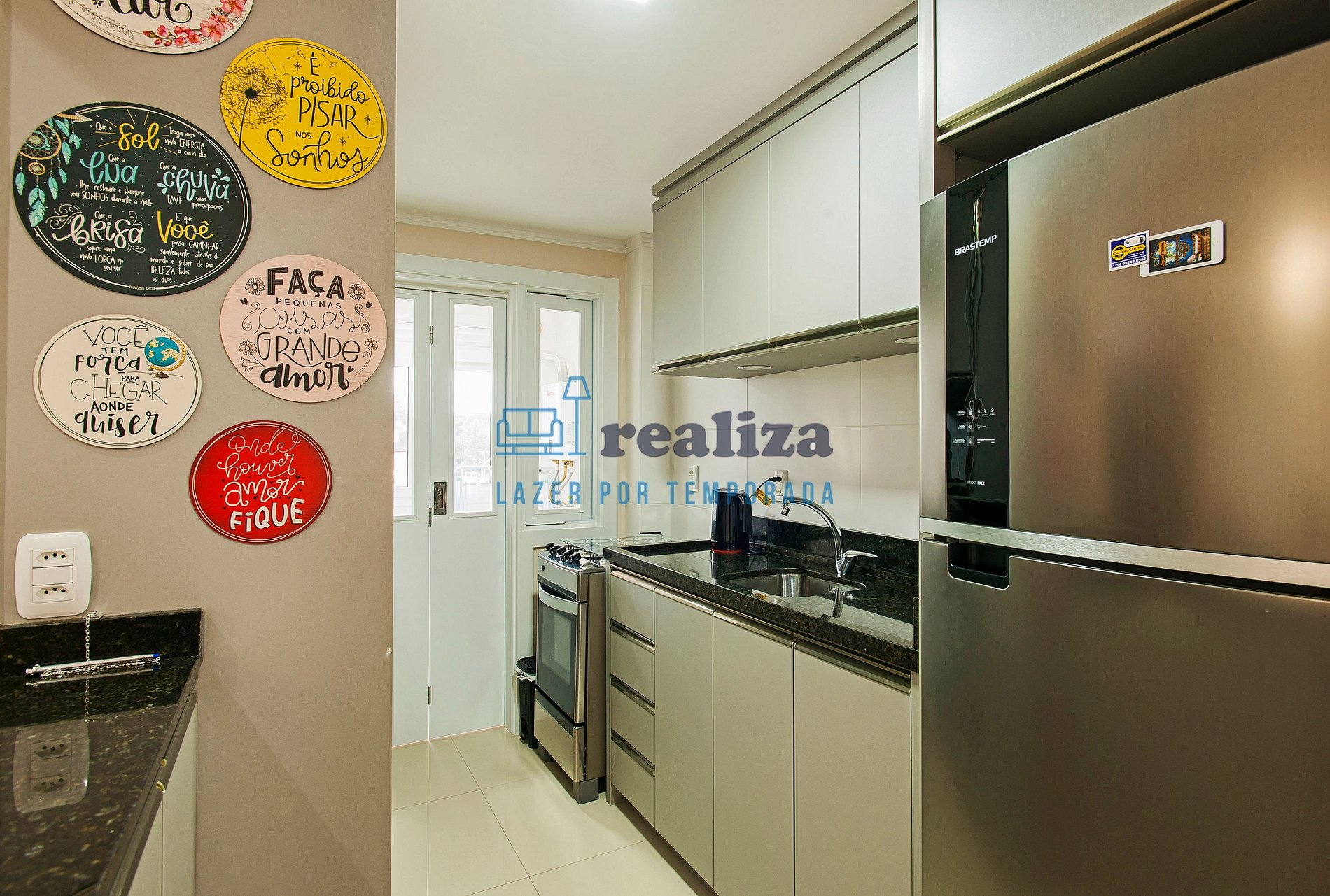 O apartamento foi pensado nos mínimos detalhes para o seu máximo de conforto, conta com uma cozinha, completa e totalmente equipada, integrada à sala de jantar e à sala de estar. Varanda com churrasqueira.