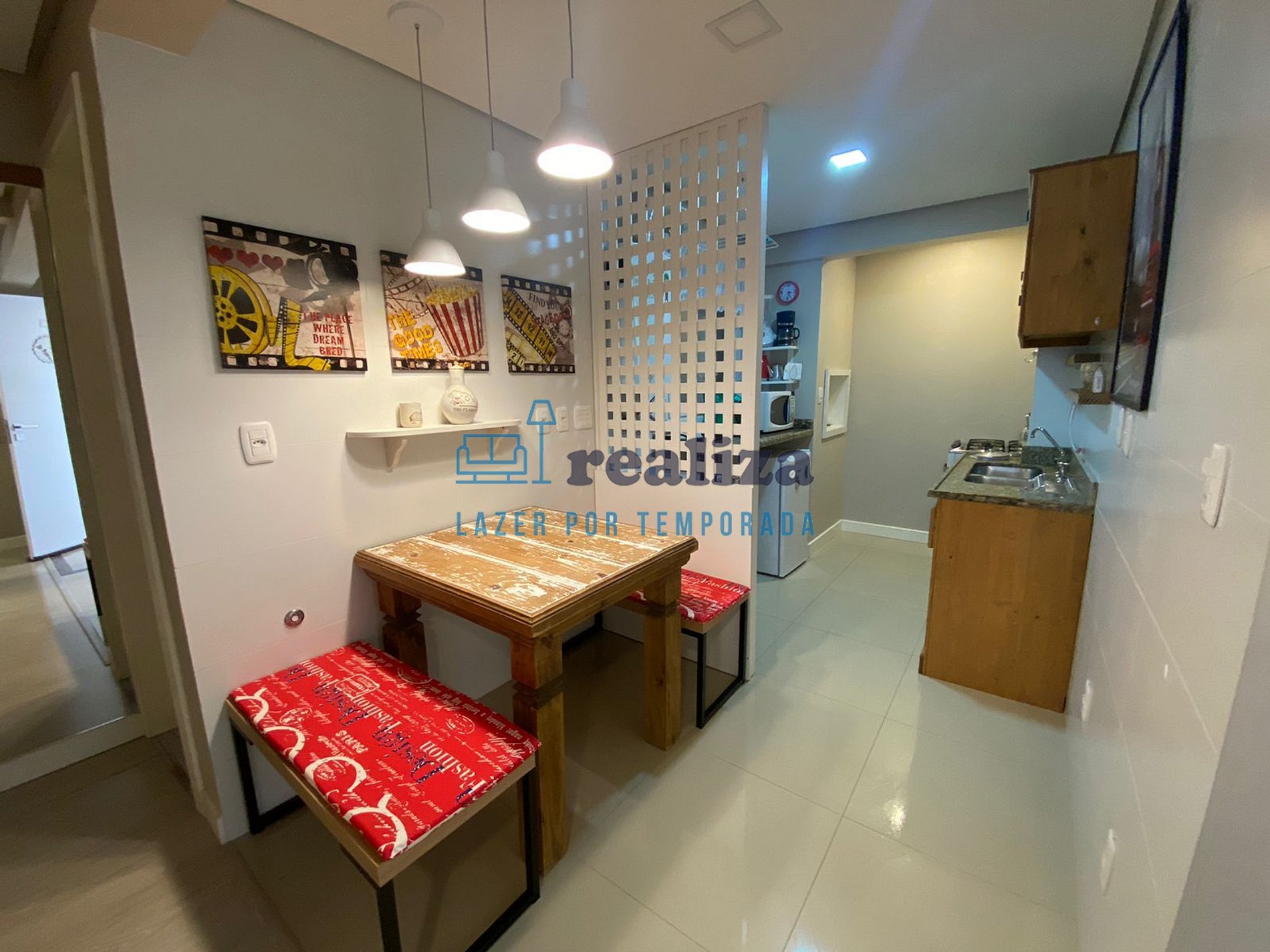 Totalmente equipado e mobiliado, possui 2 banheiros, cozinha com churrasqueira, utensílios domésticos, vaga de garagem, ar condicionado (split - quente/frio), TV e internet.